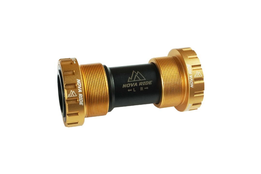 Introducing the Nova Ride Bottom Bracket: An Innovative Solution for Your Drivetrain Our engineers have created a unique bottom bracket designed to enhance your bike's performance. The Nova Ride is easy to install, adds a pop of color to your ride, and improves your drivetrain transmission.